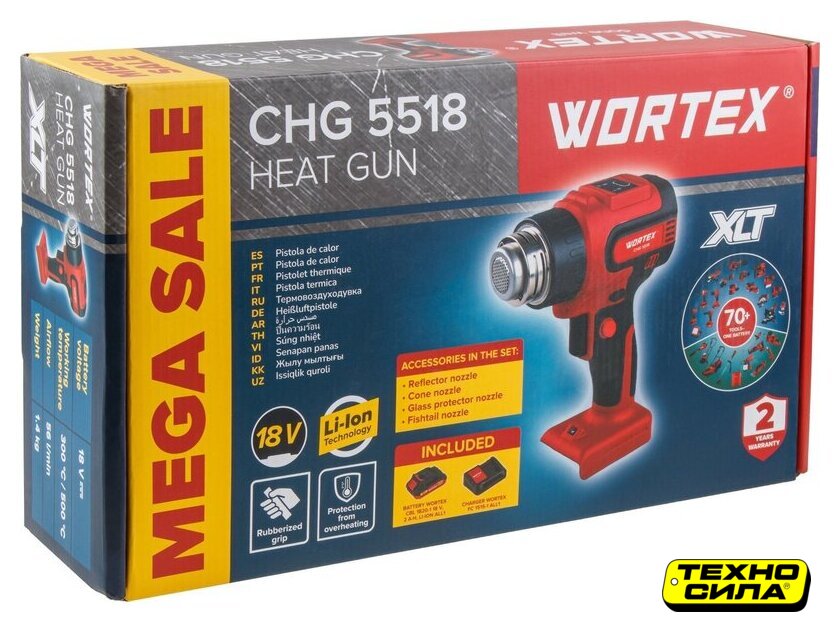 Комплект поставки | - Аккумулятор WORTEX CBL 1820-1 - 1 шт;- Зарядное устройство WORTEX FC 1515-1 - 1 шт.; - Рефлекторное сопло - 1 шт.;- Коническое сопло - 1 шт.;- Стеклозащитное сопло - 1 шт.;- Насадка рыбий хвост - 1 шт.;- Паспорт; |