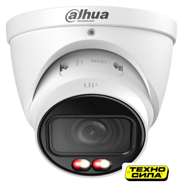уличная проводная камера, купольная, матрица 1/1.8" CMOS, 4 МП, объектив F/1 2.8 мм, теплый свет подсветка, интерфейс проводной, подключение микрофона, карты памяти microSD