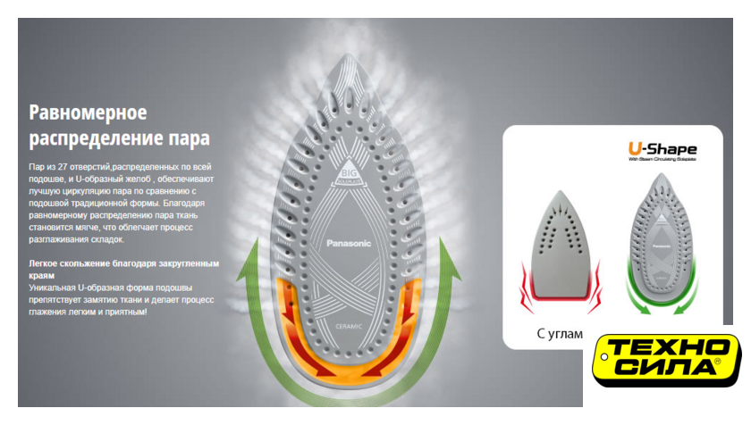 2600 Вт, с парогенератором, подошва UniCera, постоянная подача пара