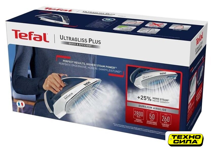 2400 Вт, с пароувлажнением, подошва SteamGlide Plus, постоянная подача пара