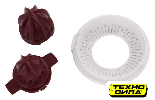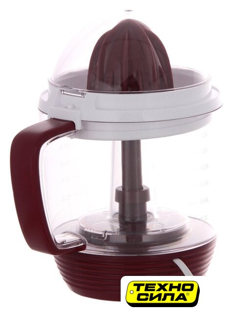 Комплектация | КрышкаКонус для апельсиновКонус для лимоновФильтрЕмкость для сбора сокаРычаг для регулировки мякоти в соке |