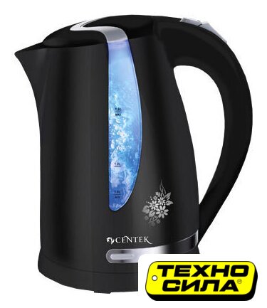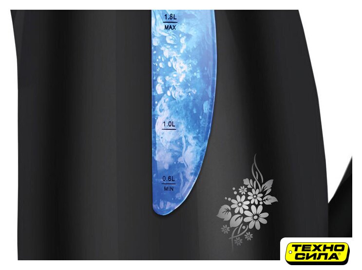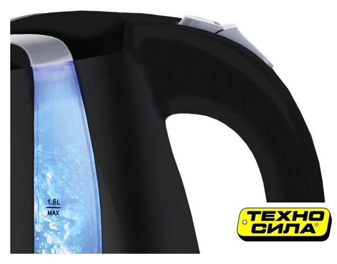 1800 Вт, объем 1.7 л, подсветка, цвет прозрачный/черный