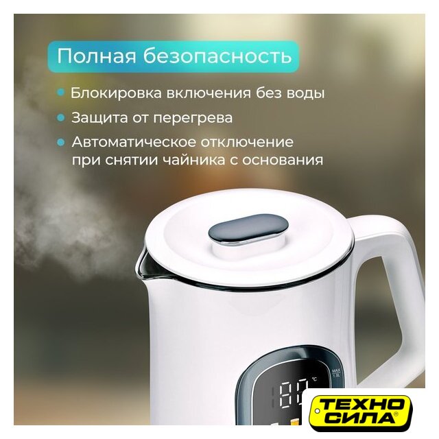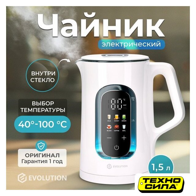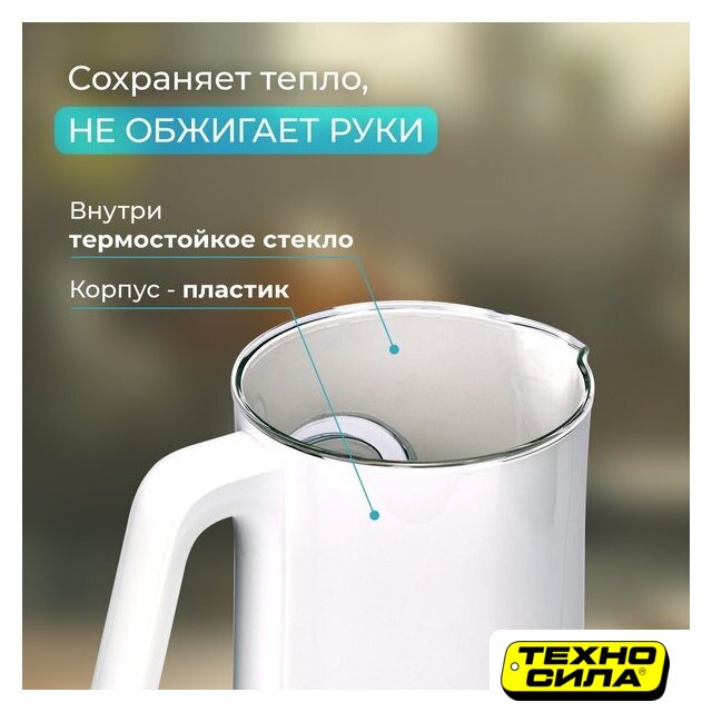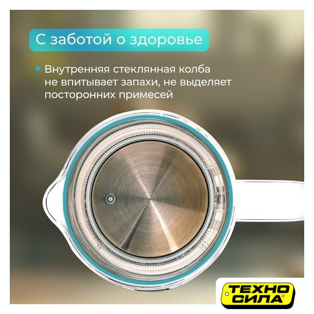 2200 Вт, объем 1 л, подсветка, цвет нержавеющая сталь/прозрачный