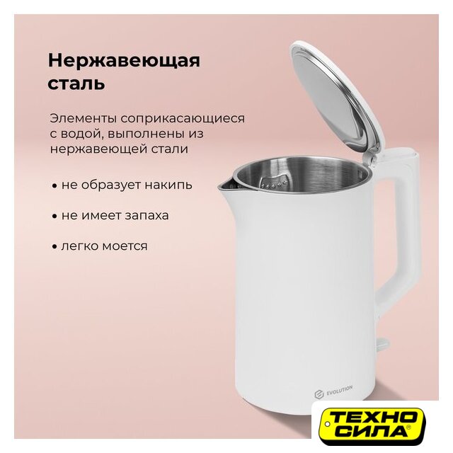 2200 Вт, объем 1.7 л, подсветка, цвет нержавеющая сталь