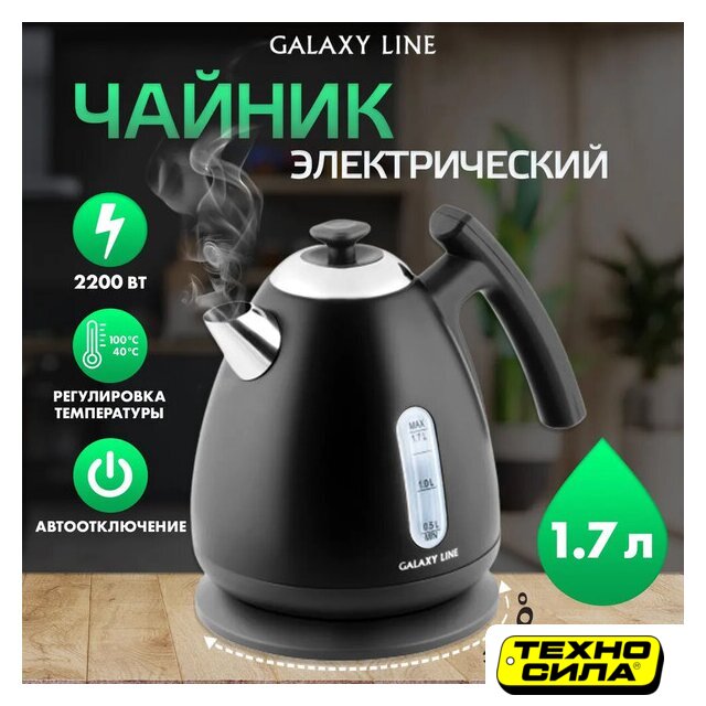 1200 Вт, объем 1 л, терморегулятор, цвет черный