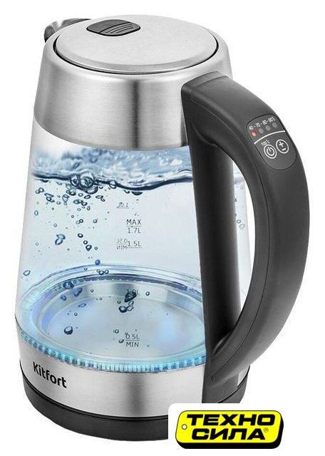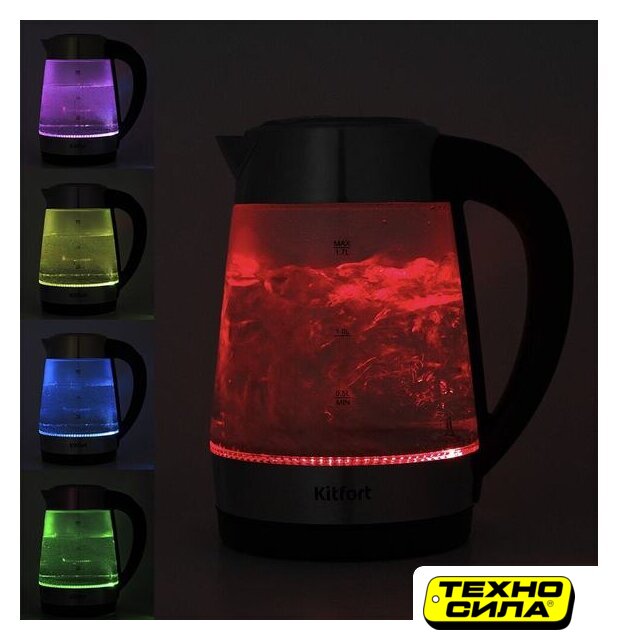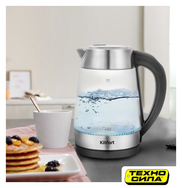 2200 Вт, объем 1 л, подсветка, цвет нержавеющая сталь/прозрачный