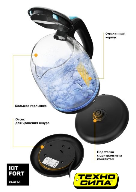 2200 Вт, объем 1.7 л, подсветка, цвет черный
