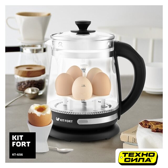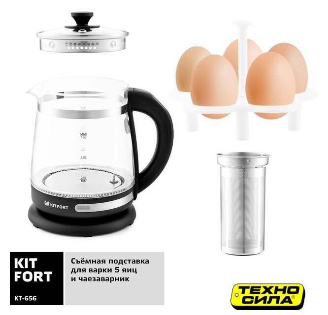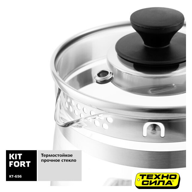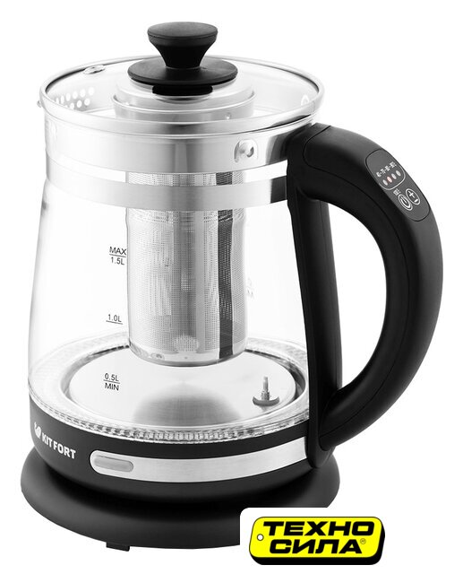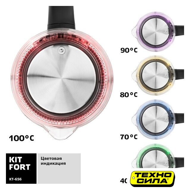 2200 Вт, объем 1.7 л, терморегулятор, подсветка, цвет серебристый/черный