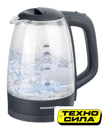 1800 Вт, объем 1.7 л, подсветка, цвет прозрачный/черный