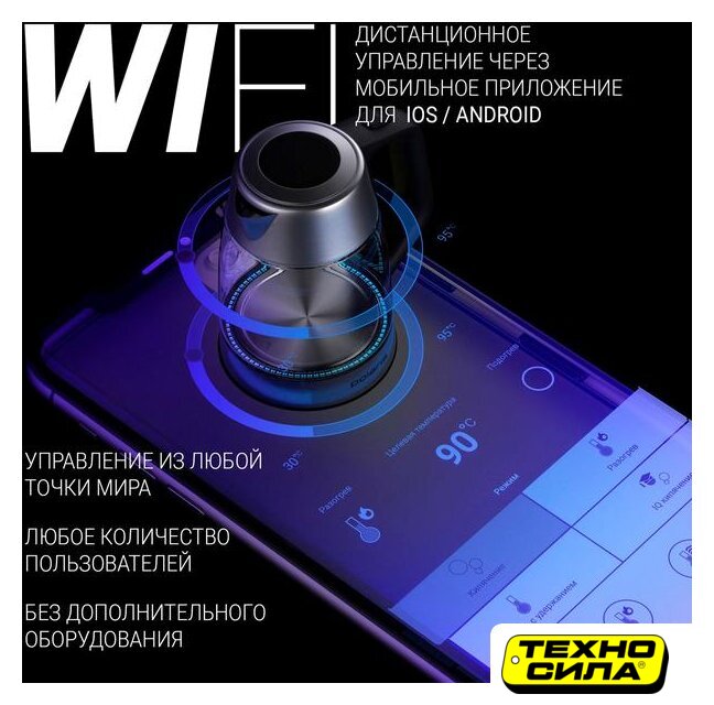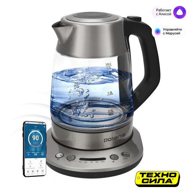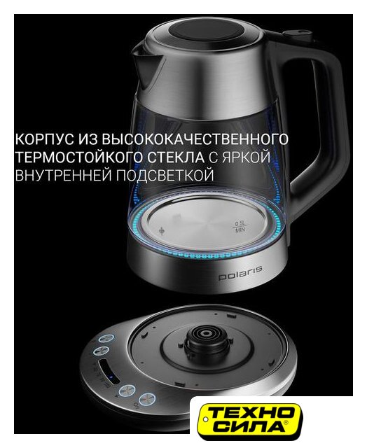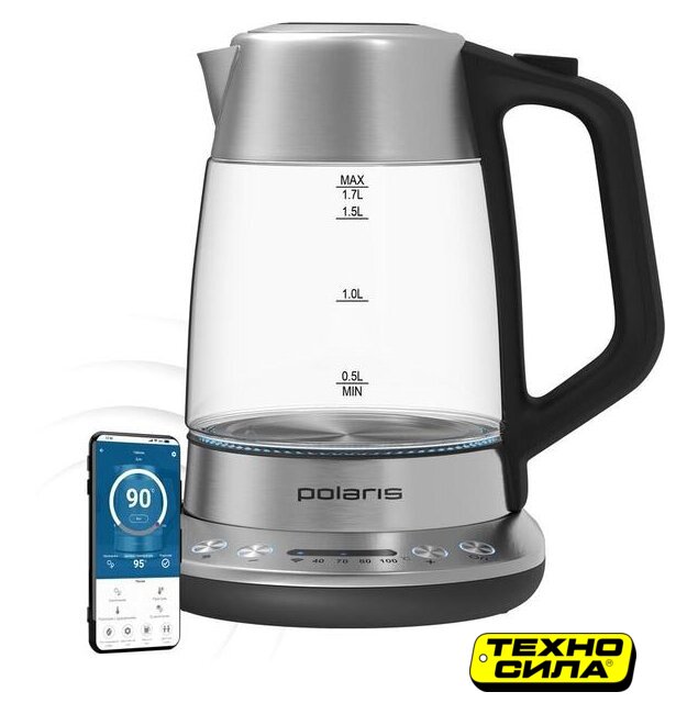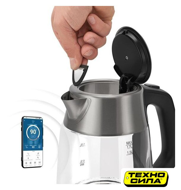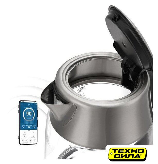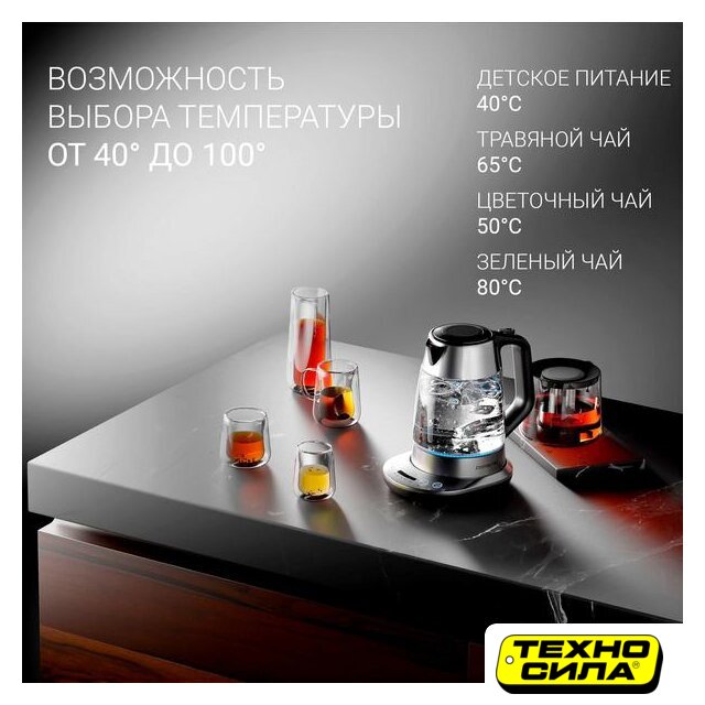 2200 Вт, объем 1.7 л, заваривание чая 0.8 л, терморегулятор, цвет нержавеющая сталь/черный