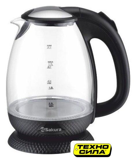 2200 Вт, объем 1.7 л, подсветка, цвет черный