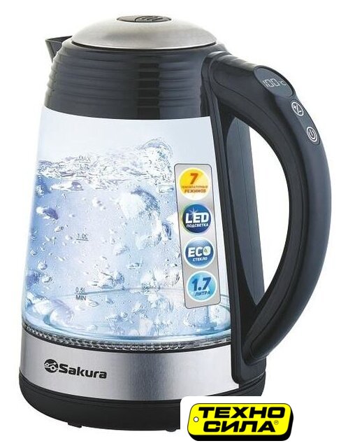 2200 Вт, объем 1.7 л, подсветка, цвет нержавеющая сталь/черный