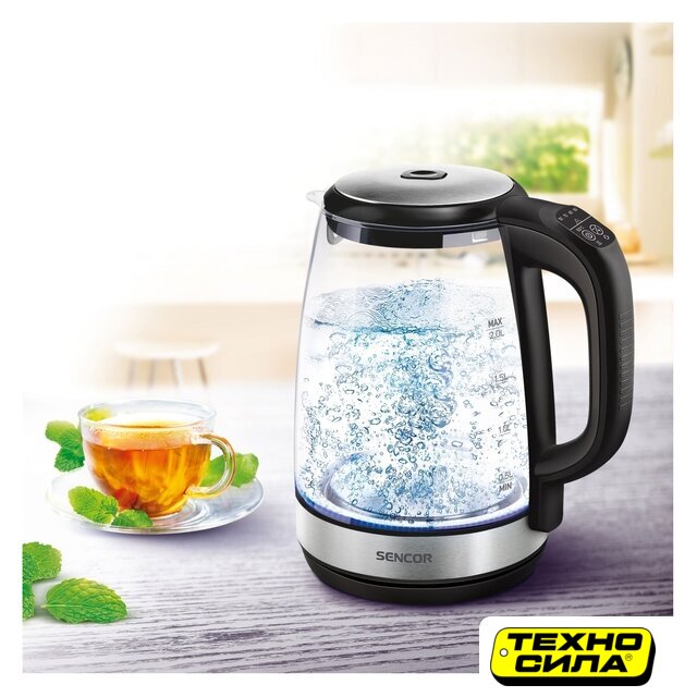 2200 Вт, объем 2 л, терморегулятор, подсветка, цвет бирюзовый/прозрачный