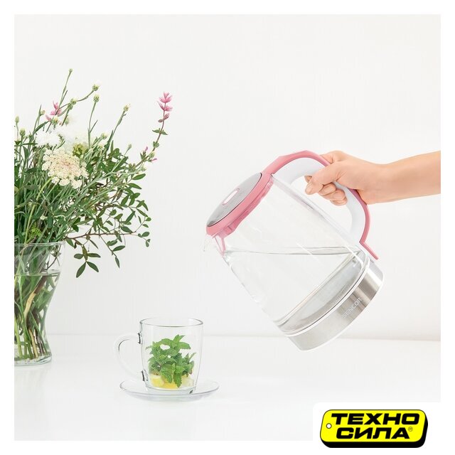 2200 Вт, объем 1.7 л, подсветка, цвет прозрачный/черный
