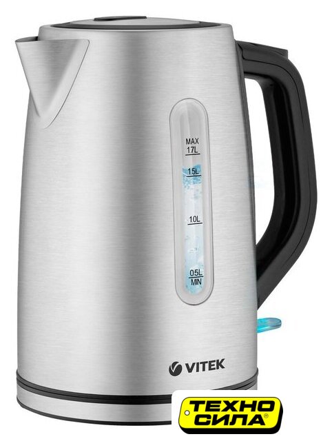 2200 Вт, объем 1.7 л, терморегулятор, подсветка, цвет нержавеющая сталь/черный