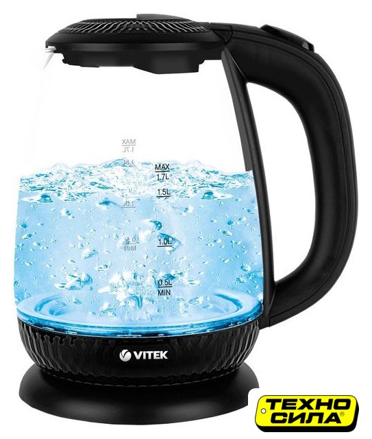 2200 Вт, объем 1.7 л, подсветка, цвет серебристый/черный