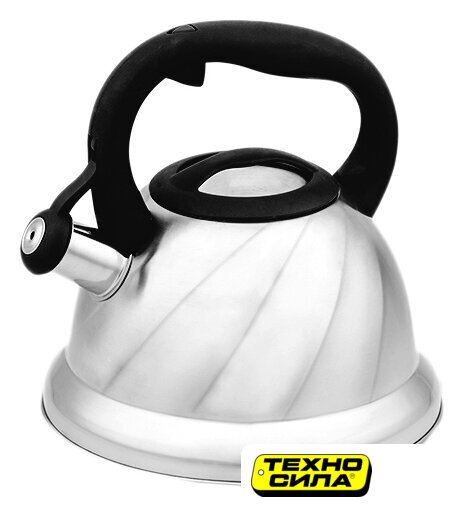 3 л, нержавеющая сталь, полированная нержавеющая сталь, ручка стальная с изоляцией, свисток с курком на ручке