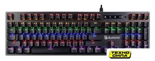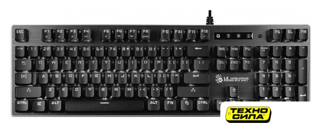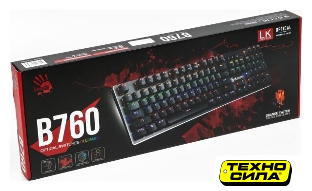 игровая для ПК, механическая, Bloody BLMS Red Plus, ход линейный/тихие, пластик, интерфейс подключения - USB-A, подсветка, кириллица: да, цвет черный