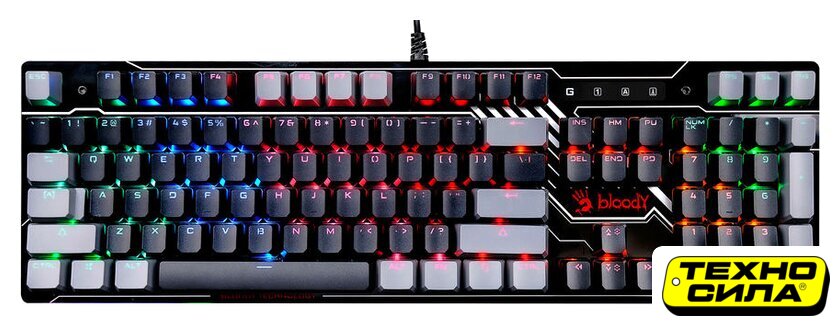 игровая для ПК/для компьютеров Apple, механическая, A4Tech FS Yellow, ход линейный/тихие, пластик, интерфейс подключения - USB-A, цвет белый/бирюзовый