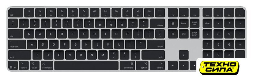 стандартная для компьютеров Apple, ножничная, полностью металлическая, интерфейс подключения - Bluetooth, цвет черный/серебристый