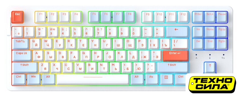 игровая для ПК, механическая, RK Cream, ход линейный, пластик, интерфейс подключения - USB-A/радио/Bluetooth/USB-C, кириллица: да, цвет белый/синий