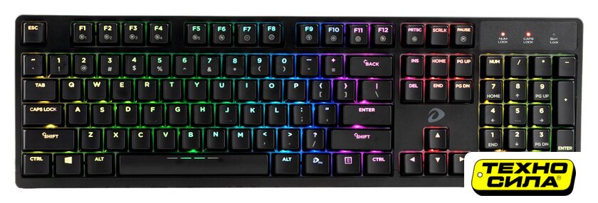 игровая для ПК, мембранная, пластик, интерфейс подключения - USB-A, кириллица: да, влагозащита, цвет черный