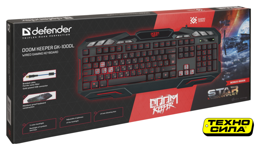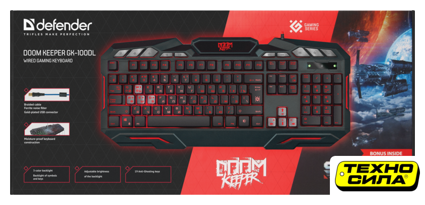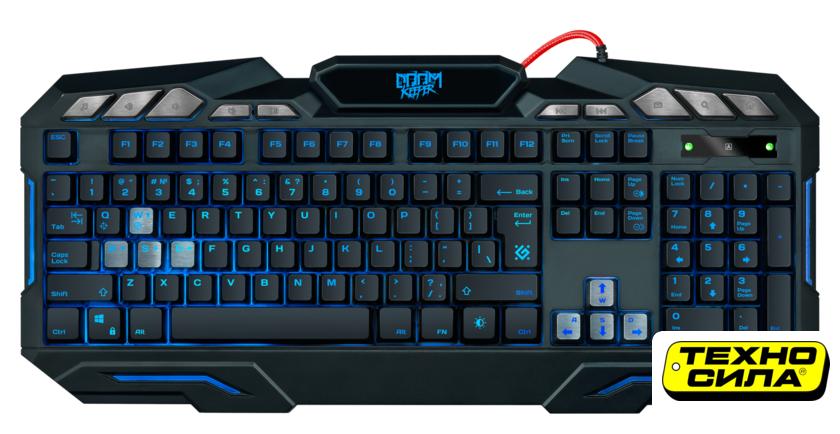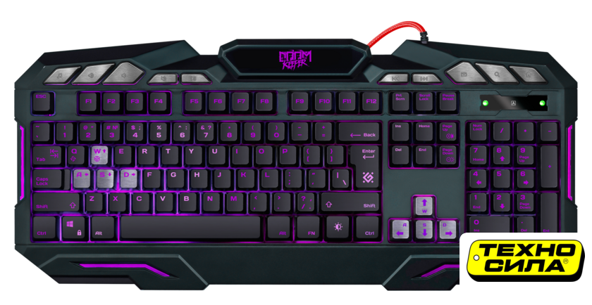 игровая для ПК, мембранная, пластик, интерфейс подключения - USB-A, подсветка, кириллица: да, цвет черный