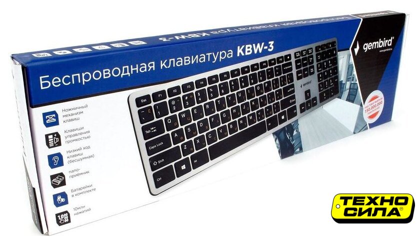 стандартная для ПК, интерфейс подключения - радио, цвет серебристый|пластик