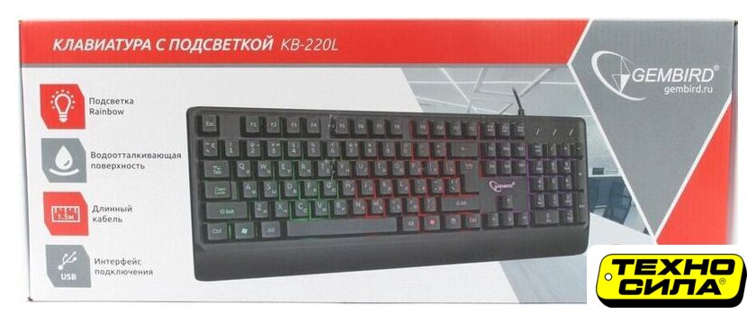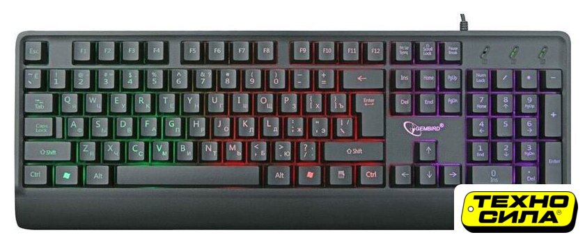 игровая для ПК, мембранная, пластик, интерфейс подключения - USB, подсветка, цвет черный