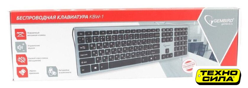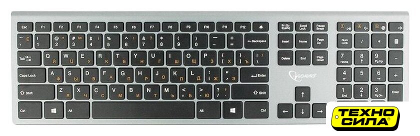 стандартная для ПК, мембранная, пластик, интерфейс подключения - радио, цвет серебристый
