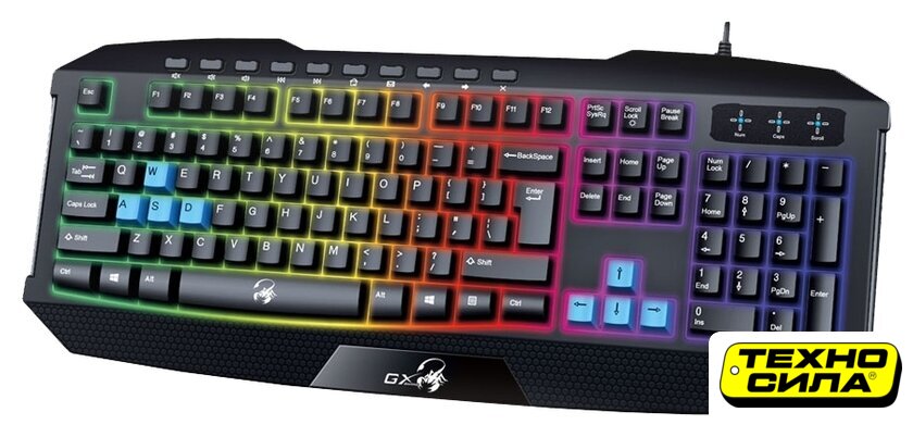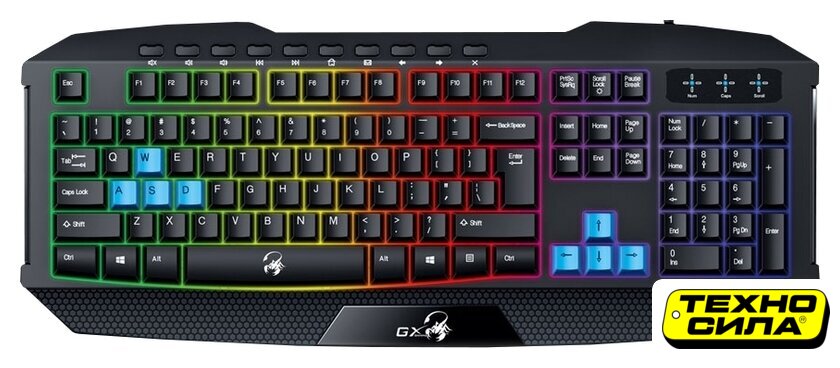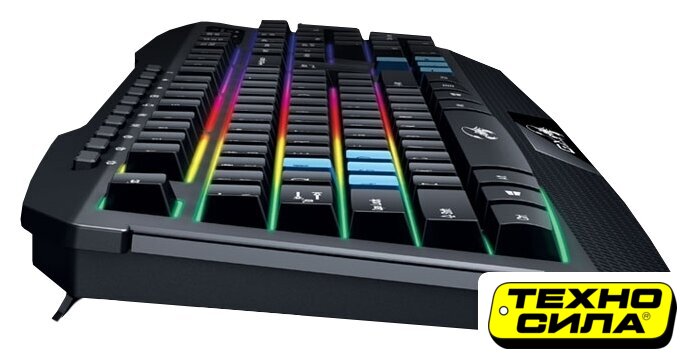 игровая для ПК, мембранная, пластик, интерфейс подключения - USB-A, подсветка, влагозащита, цвет черный