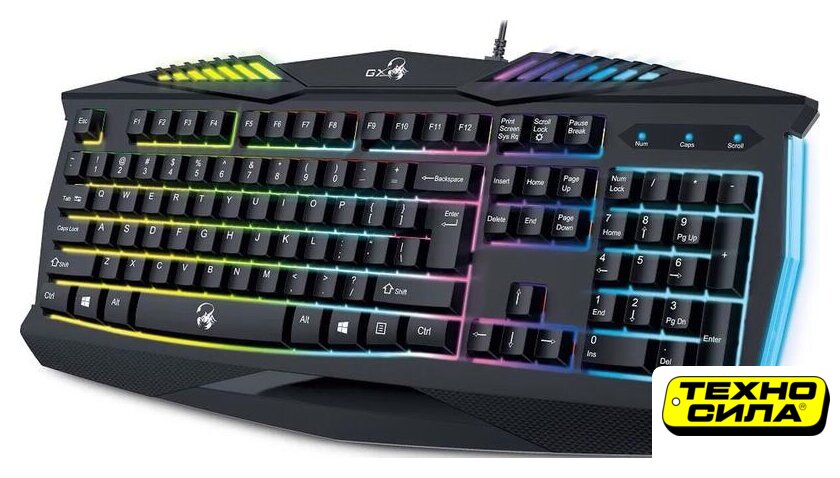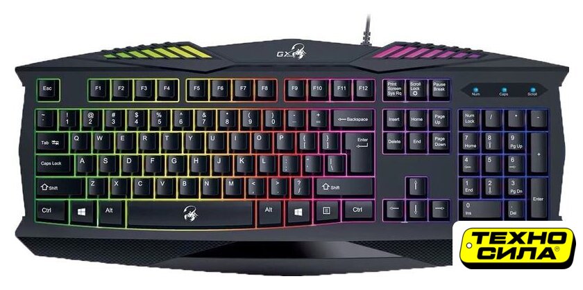 игровая для ПК, мембранная, пластик, интерфейс подключения - USB-A, подсветка, влагозащита, цвет черный