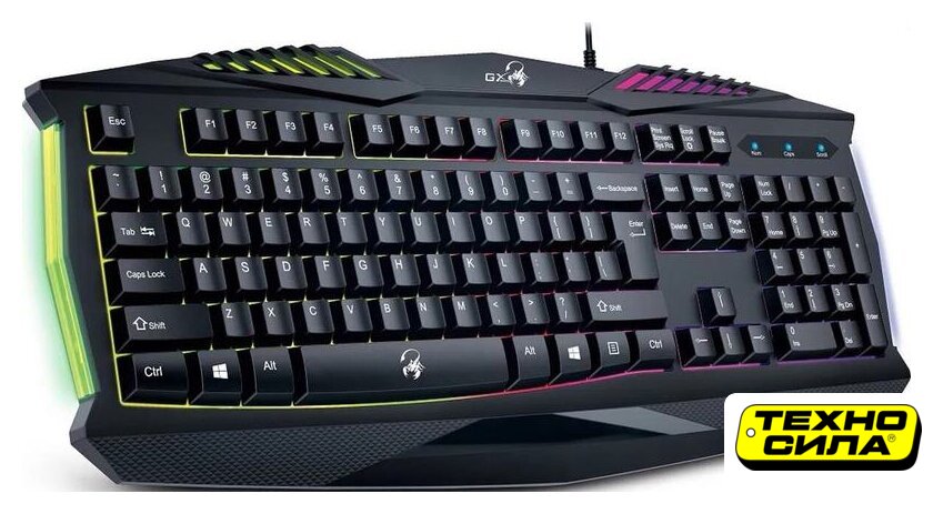 игровая для ПК, мембранная, пластик, интерфейс подключения - USB, подсветка, цвет черный