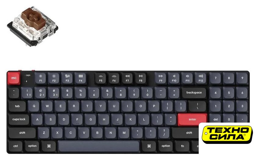 игровая для ПК/для компьютеров Apple/для iPad/для устройств Android, механическая, Gateron Low Profile Blue, ход тактильный/с кликом, пластик, интерфейс подключения - USB-A/Bluetooth, подсветка, цвет черный/серый