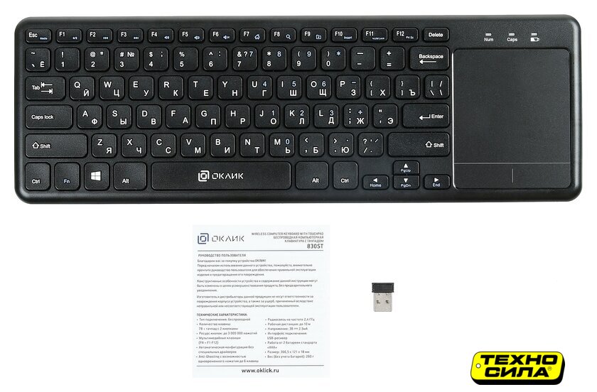 стандартная для ПК, мембранная, пластик, интерфейс подключения - радио, цвет черный