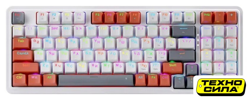 игровая для ПК, механическая, Outemu Brown, ход тактильный/тихие, пластик, интерфейс подключения - USB/радио/Bluetooth, подсветка, цвет серый/черный