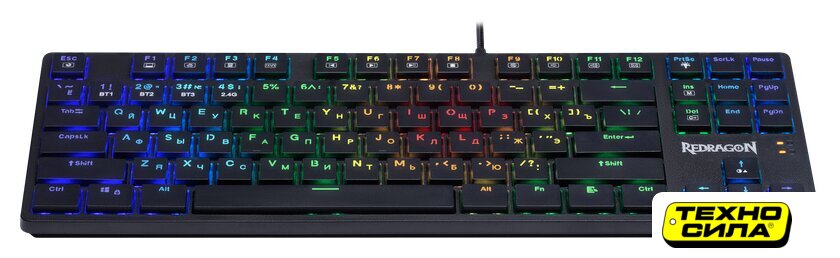 игровая для ПК, механическая, Redragon Maple, ход линейный, пластик, интерфейс подключения - USB-A/радио/Bluetooth, кириллица: да, цвет черный/красный