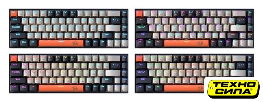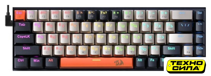 игровая для ПК, механическая, Redragon Ice, ход линейный, пластик, интерфейс подключения - USB-A, цвет белый/прозрачный