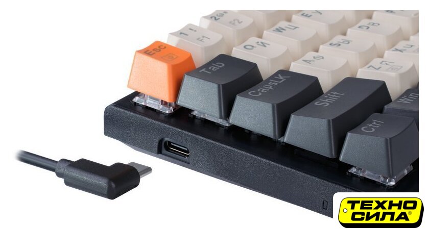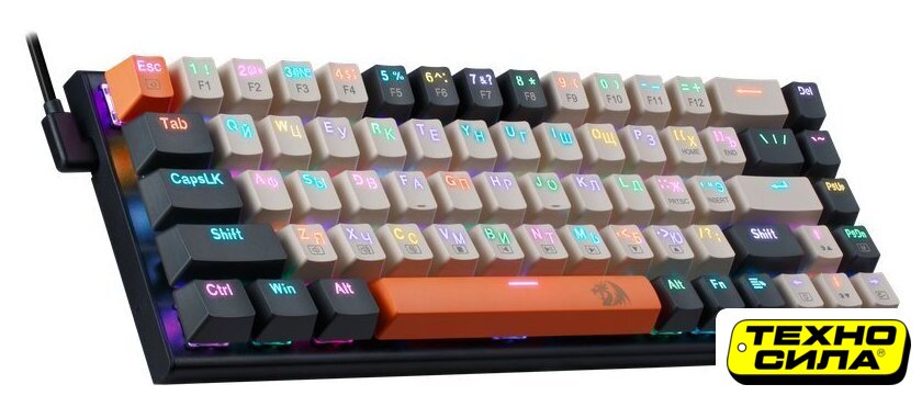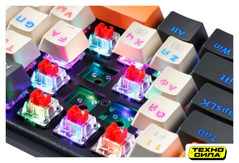 игровая для ПК, механическая, Outemu Brown, ход тактильный/тихие, пластик, интерфейс подключения - USB-A, подсветка, влагозащита, цвет черный/красный