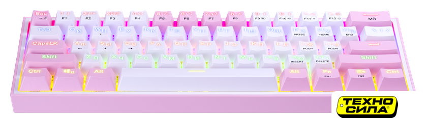 игровая для ПК, механическая, пластик, интерфейс подключения - USB-A, подсветка, кириллица: да, цвет белый/серый