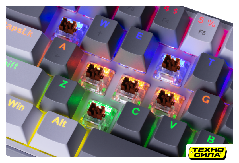 игровая для ПК, механическая, пластик, интерфейс подключения - USB-A, подсветка, кириллица: да, цвет белый/серый