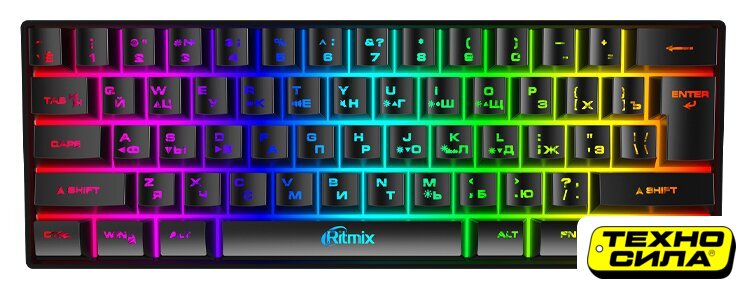 игровая для ПК, мембранная, пластик, интерфейс подключения - USB, подсветка, цвет черный