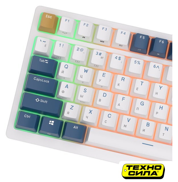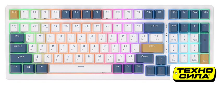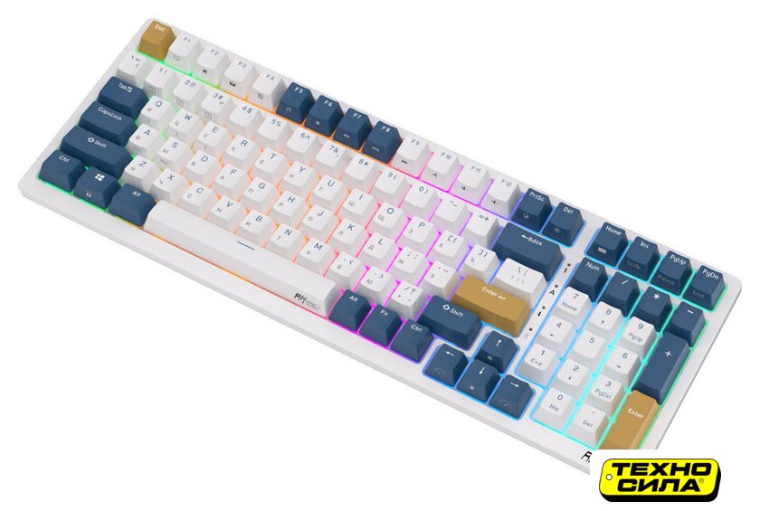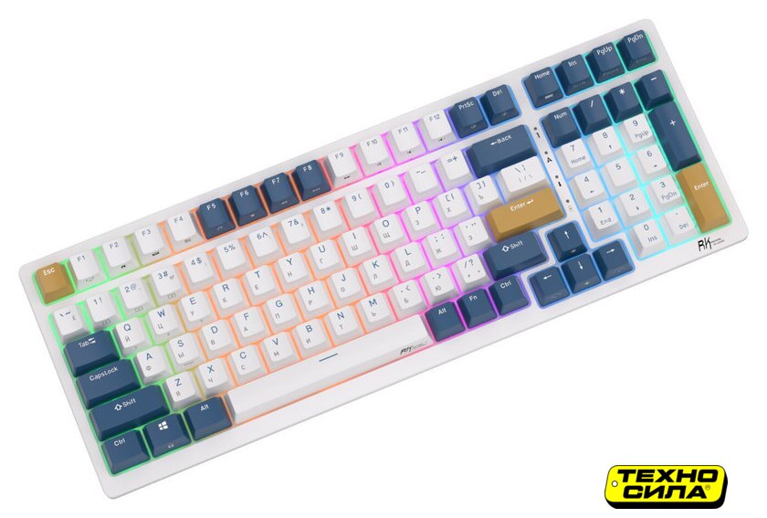игровая для ПК/для компьютеров Apple, механическая, RK Brown, ход тактильный/низкопрофильный, пластик, интерфейс подключения - USB-A/радио/Bluetooth, подсветка, кириллица: да, USB-хаб, цвет белый