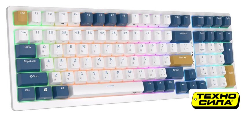 игровая для ПК/для компьютеров Apple/для iPad/для устройств Android, механическая, RK Red, ход линейный/без клика, пластик, интерфейс подключения - USB/Bluetooth, подсветка, цвет белый