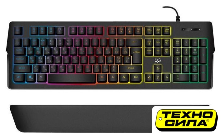 игровая для ПК, мембранная, пластик, интерфейс подключения - USB, подсветка, влагозащита, цвет черный