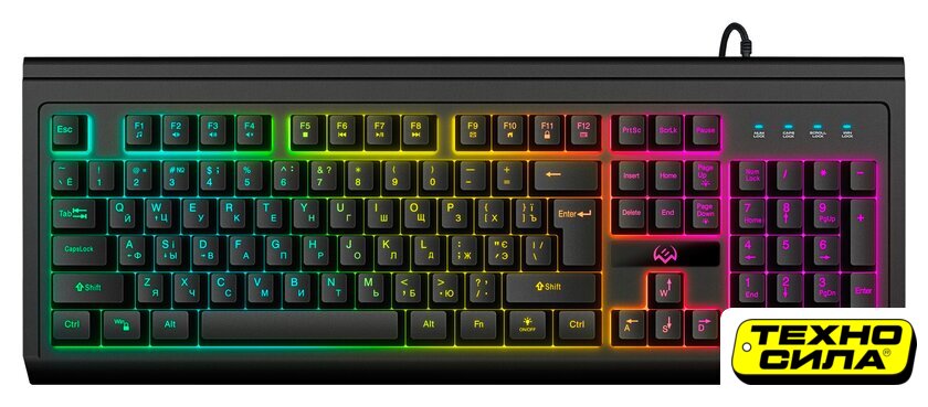 игровая для ПК, мембранная, пластик, интерфейс подключения - USB, подсветка, цвет черный