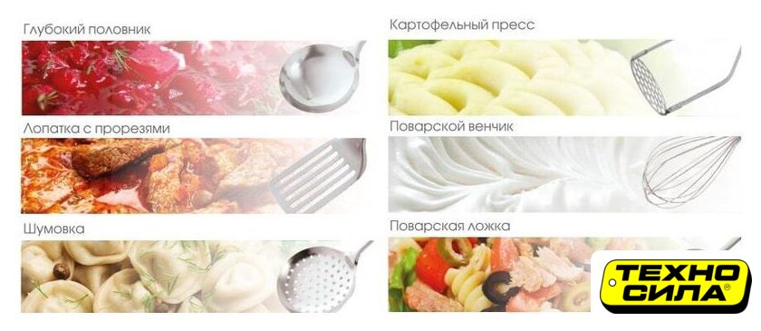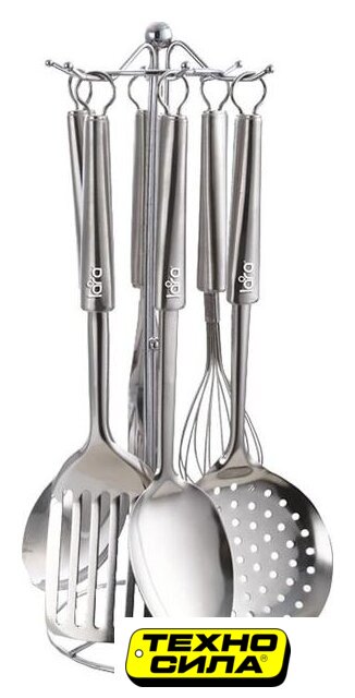 Состав набора | венчик, картофелемялка, ложка, лопатка, половник, подставка, шумовка |
