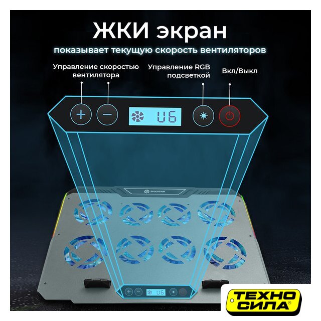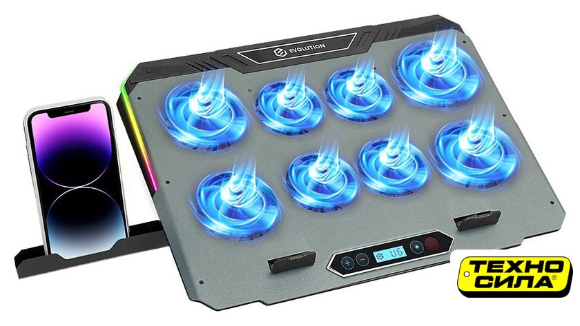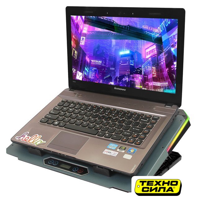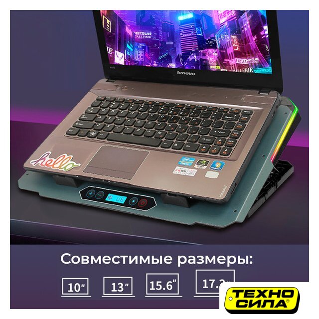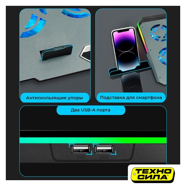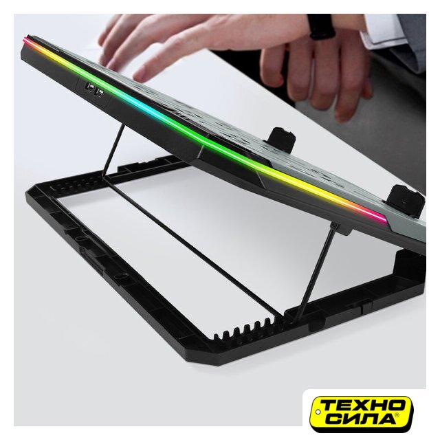для ноутбука до 17.3", активное охлаждение, шум 20 дБ, регулируемый наклон, подсветка, 1xUSB