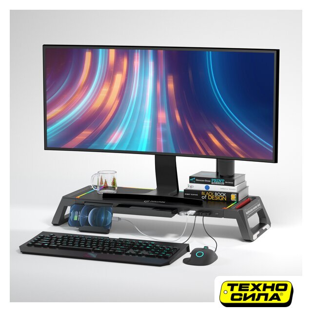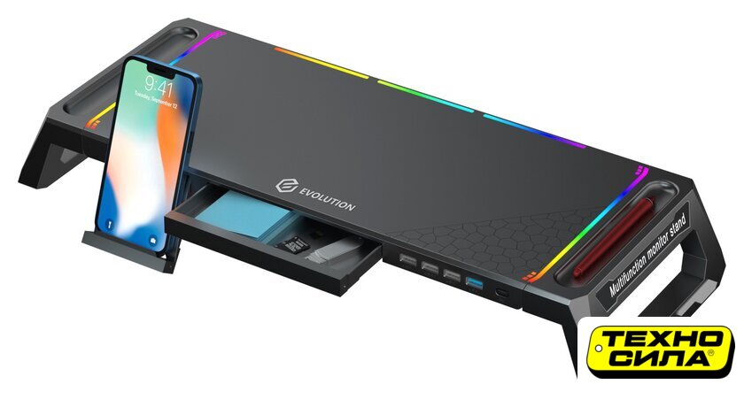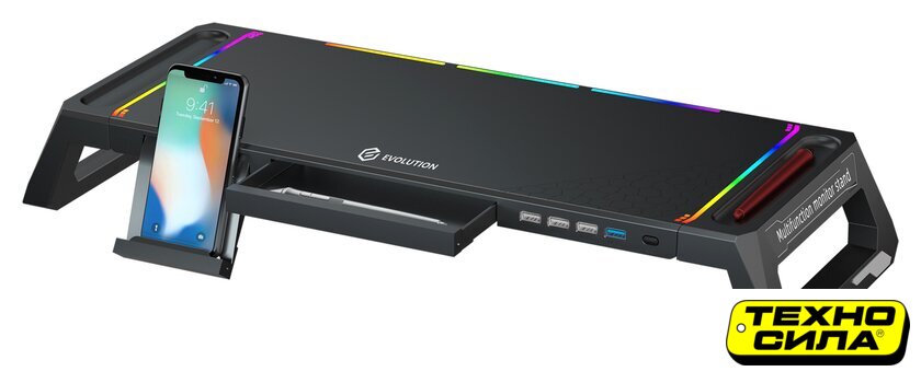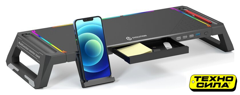 Особенности | - складная конструкция ножек (позволяет изменять габариты и высоту подставки)- скрытая подставка для смартфона- ящик для мелочей- два слота для ручек- максимальный вес монитора (при использовании со сложенными ножками) - 20 кг- максимальный вес монитора (в разложенном состоянии) - 50 кг |