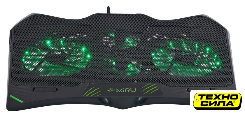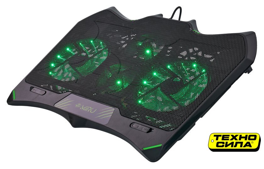 для ноутбука до 17.3", активное охлаждение, шум 21 дБ, регулируемый наклон, подсветка, 1xUSB